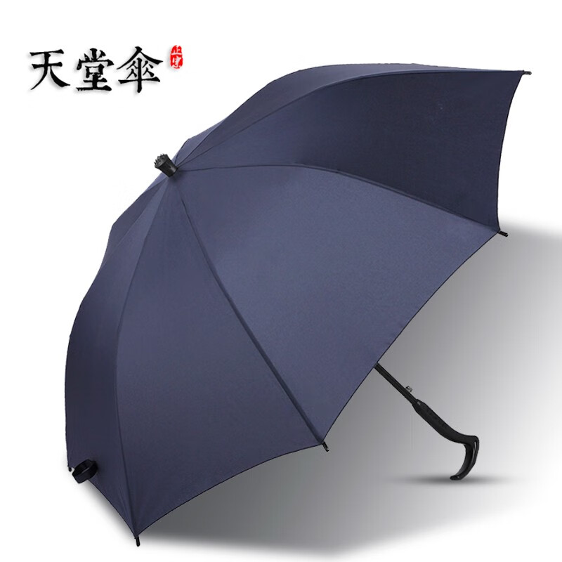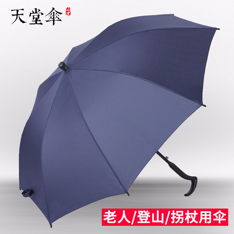 天堂伞中老年拐杖伞加固登山格子雨伞防滑晴雨伞 男 藏青色纯色