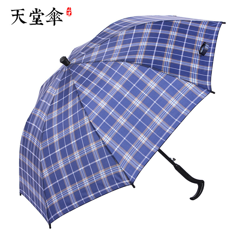 天堂伞雨伞中老年拐杖伞加固长柄伞登山雨伞格子伞防滑晴雨伞 经典蓝色格子