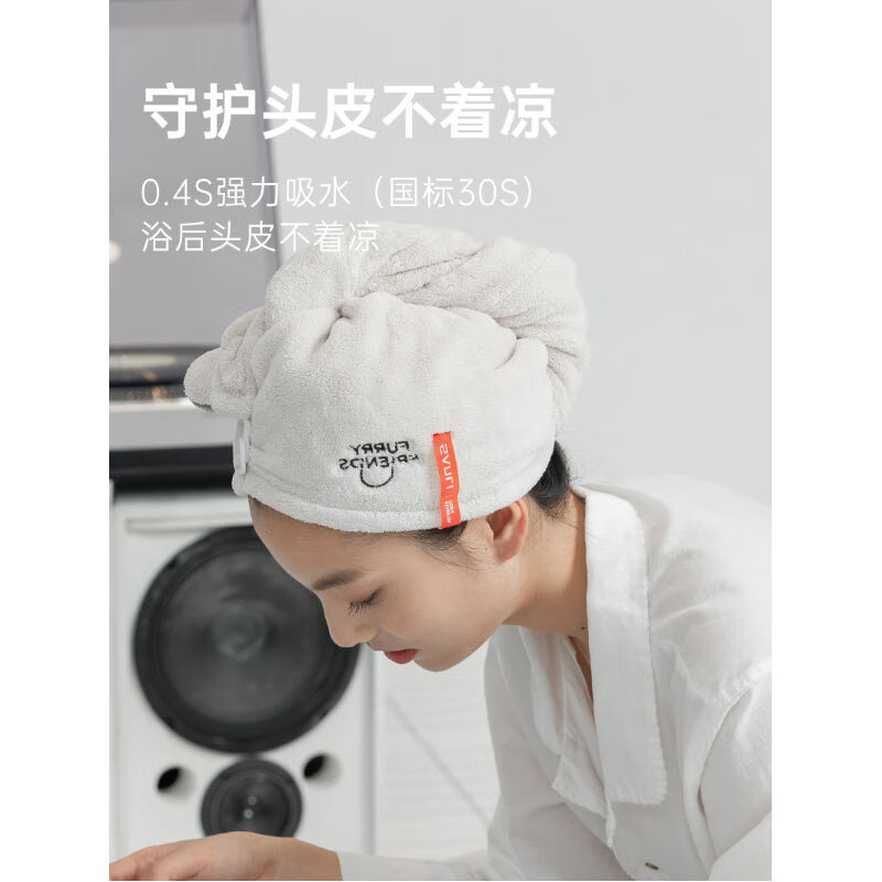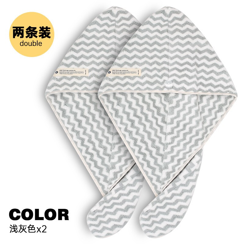 三利干发帽 吸水速干擦头发毛巾包头巾浴帽可爱女长发干发神器 波纹款(浅灰色+浅灰色)