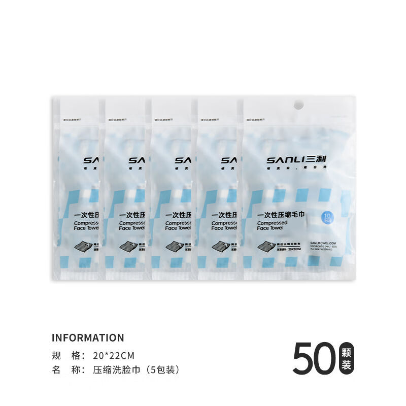 三利压缩毛巾一次性洗脸巾旅行装颗粒压缩洁面巾加厚便携旅游用品 植物纤维袋装压缩毛巾5袋装