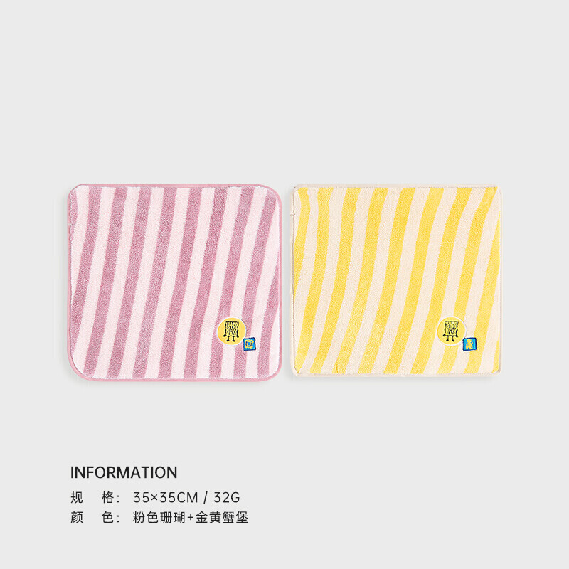 三利海绵宝宝擦手巾挂式儿童毛巾家用女洗脸搽手布可爱柔软小方巾手帕 粉色珊瑚+金黄蟹堡