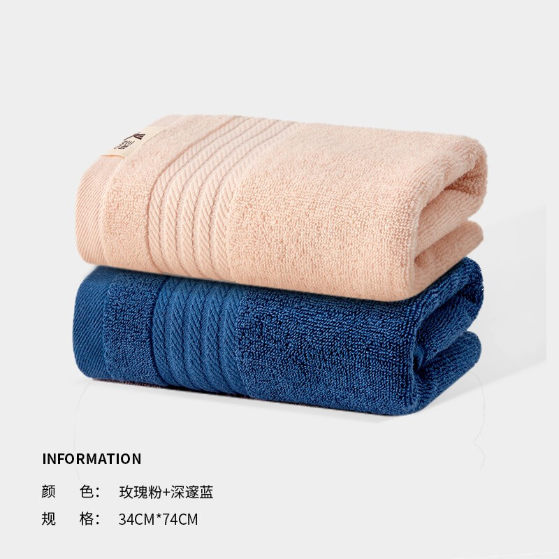三利毛巾 柔软亲肤 纯棉吸水甄选酒店款新疆棉洗脸毛巾 A类标准 34*74cm 玫瑰粉+深邃蓝