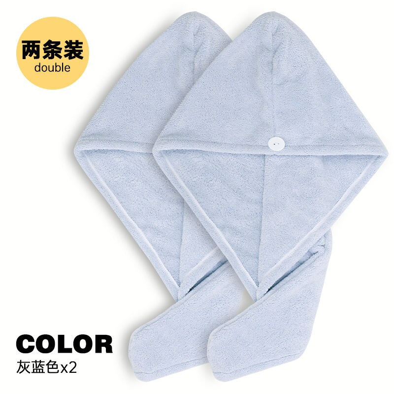 三利干发帽 柔软强吸水可爱擦头发浴帽包头速干毛巾 2条-蓝灰色