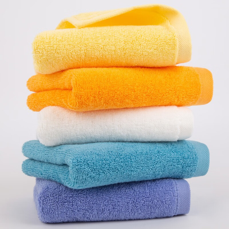 三利抗菌毛巾5条装 纯棉A类柔软吸水小毛巾男女成人儿童面巾洗脸巾 60*30cm 青/蓝/橘/黄/白