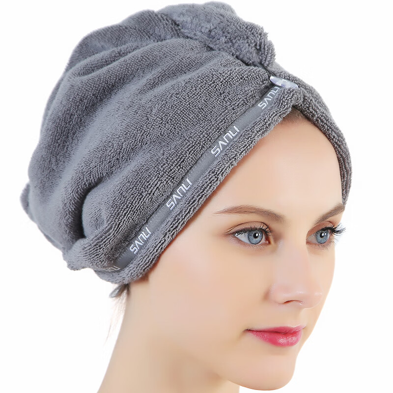 三利 长绒棉干发帽 A类标准 纯棉擦头发速干包头毛巾 140克 强吸水干发加厚浴帽 灰色