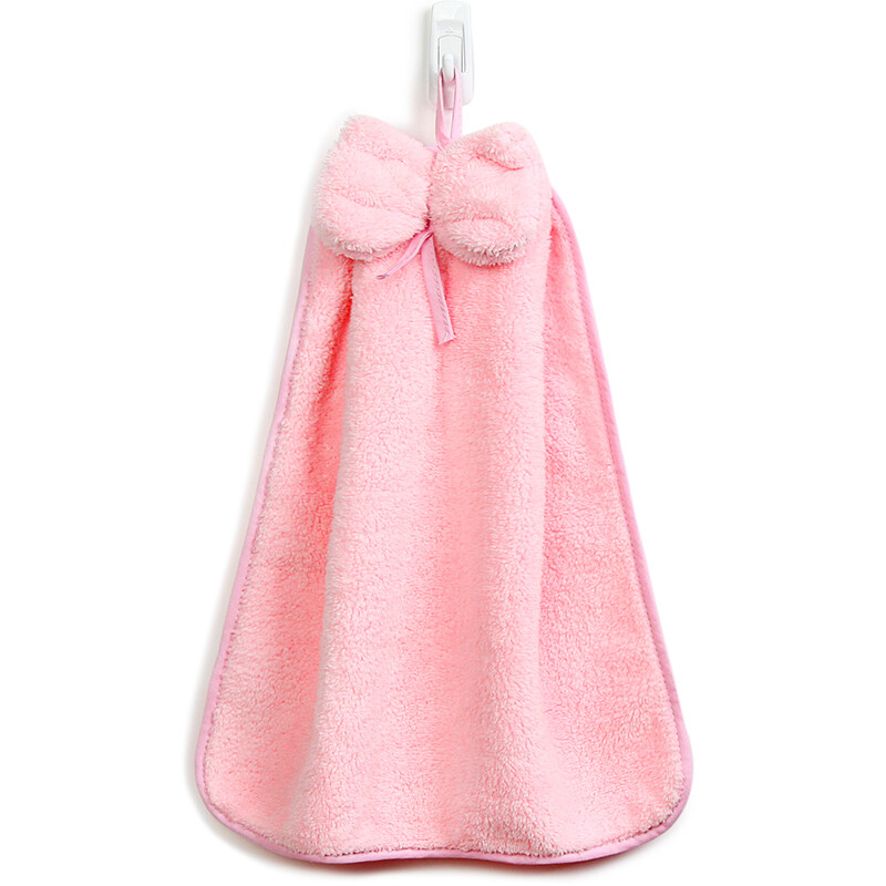 三利 珊瑚绒蝴蝶结挂式擦手巾 加厚不易掉毛强吸水 浴室厨房居家多用途抹手毛巾 30×44cm 桃粉色