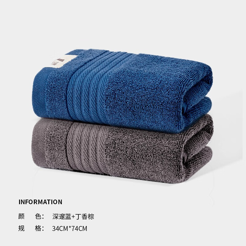 三利毛巾 柔软亲肤 纯棉吸水甄选酒店款新疆棉洗脸毛巾 A类标准 34*74cm 深邃蓝+丁香棕