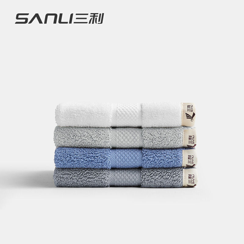 三利纯棉毛巾3条装 新疆长绒棉加厚柔软吸水洗脸面巾 34*74cm 蓝/灰/白