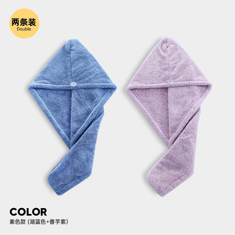 三利干发帽 吸水速干擦头发毛巾包头巾浴帽可爱女长发干发巾 素色款(湖蓝色+香芋紫)