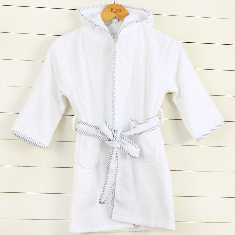 三利浴袍纯棉毛巾料秋冬吸水儿童宝宝带帽浴衣酒店浴袍 银灰边 儿童S