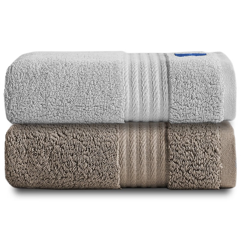 三利新疆长绒棉毛巾 纯棉A类洗脸毛巾2条装 柔软吸水洁面巾 35*72cm 咖/灰