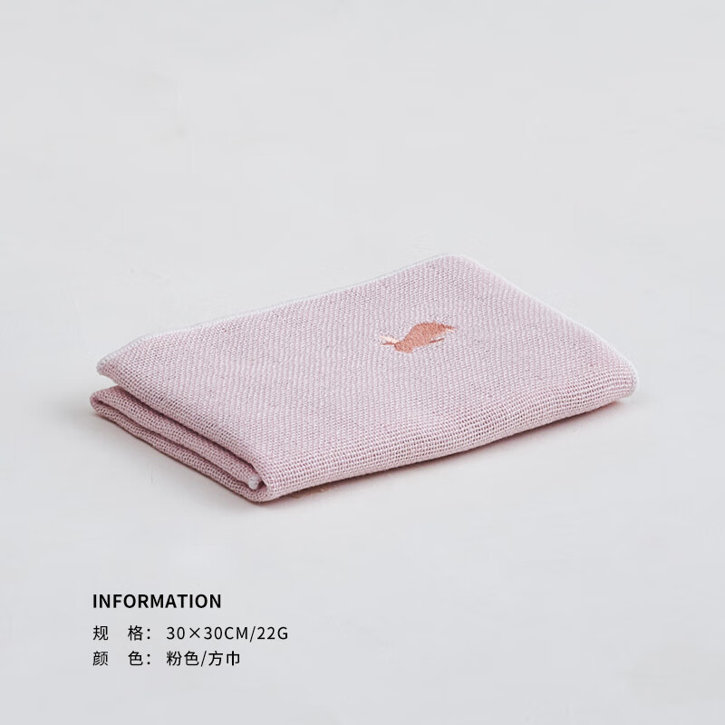 三利儿童小毛巾可爱纯棉方巾全棉洗脸巾面巾吸水童巾宝宝柔软家用 粉色-方巾