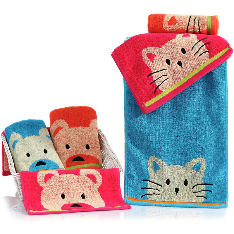 三利 纯棉卡通儿童毛巾6条 猫咪+小熊洗脸面巾 25x50cm 独立包装 猫咪毛巾3条+小熊毛巾3条