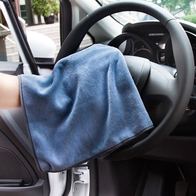三利速干洗车巾强吸水加厚抛光擦车巾居家多用途去污毛巾 擦车巾-钢蓝色-45×45cm