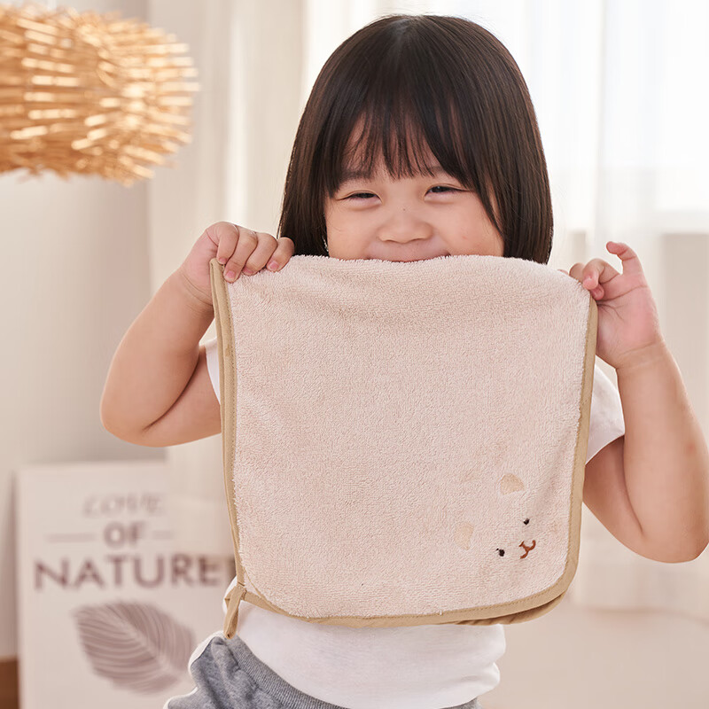 三利儿童毛巾 可爱纯棉吸水童巾宝宝口水巾方巾全棉洗脸巾小毛巾 苹果熊-方巾