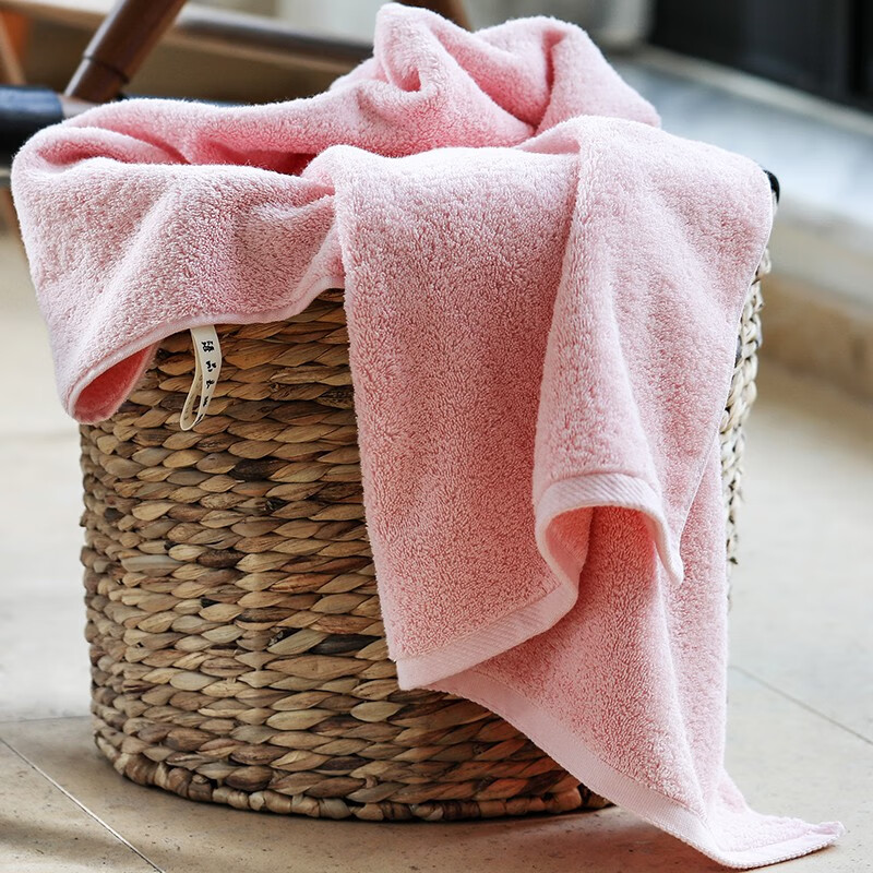三利新疆棉浴巾 A类加厚长绒棉浴巾男女通用成人洗澡大毛巾柔软吸水裹巾带挂绳 500g 桃粉色 70*150cm
