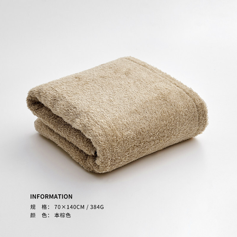 三利有机棉浴巾纯棉吸水速干毛巾 男女网红成人儿童家用洗澡大号毛巾带挂绳 70*140cm 本棕色
