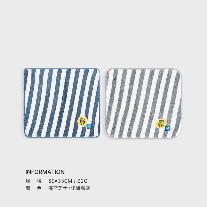 三利海绵宝宝擦手巾挂式儿童毛巾家用女洗脸搽手布可爱柔软小方巾手帕 海蓝芝士+浅海雪灰