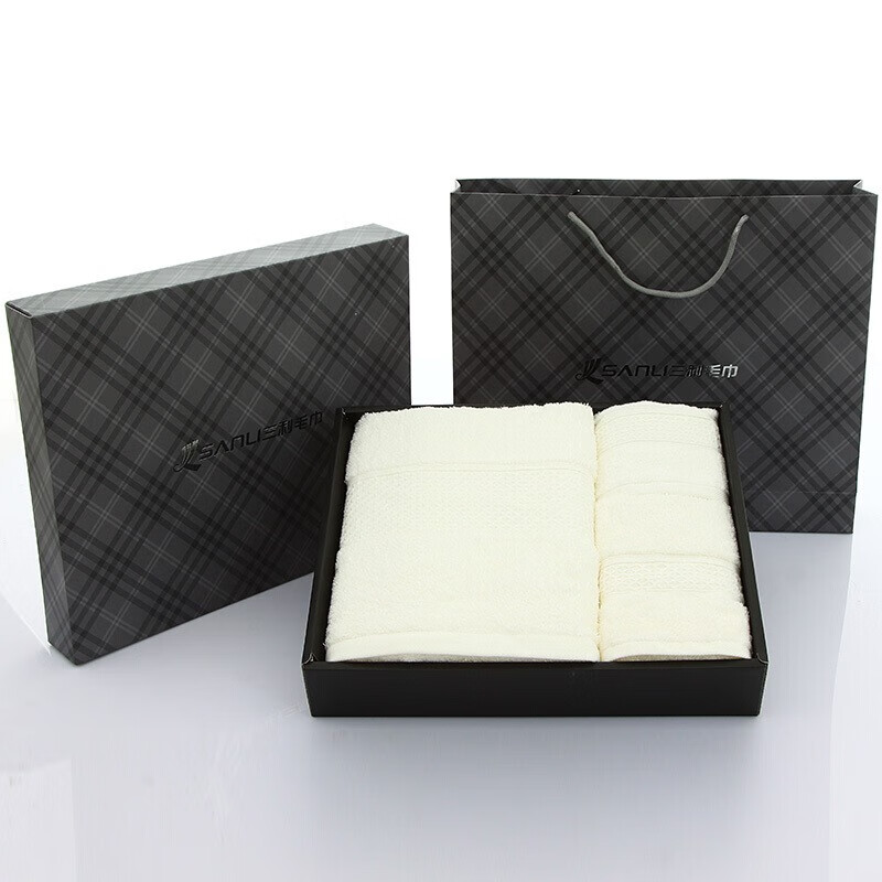 三利毛巾礼盒套装 2\\3条装毛巾礼盒礼品定制结婚伴手礼企业团购礼盒装送礼福利 含手提袋 纯棉臻品长绒棉礼盒3条装