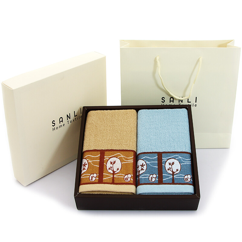 三利毛巾礼盒2条装 纯棉毛巾礼盒套装回礼伴手礼企业礼物员工福利礼品团购毛巾礼盒 简白-三件套用手提袋