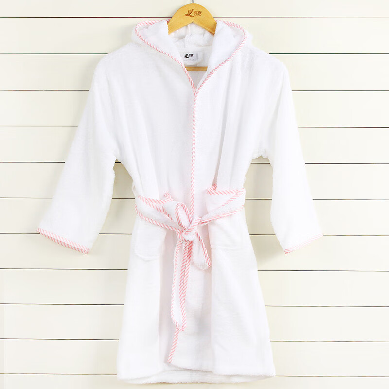 三利浴袍纯棉毛巾料秋冬吸水儿童宝宝带帽浴衣酒店浴袍 桃红边 儿童M
