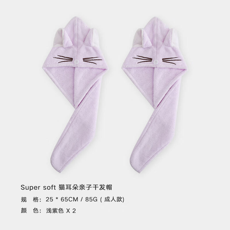 三利2条干发帽女强吸水速干儿童洗头擦头毛巾浴帽可爱干发包头巾 猫耳朵浅紫(成人2条)