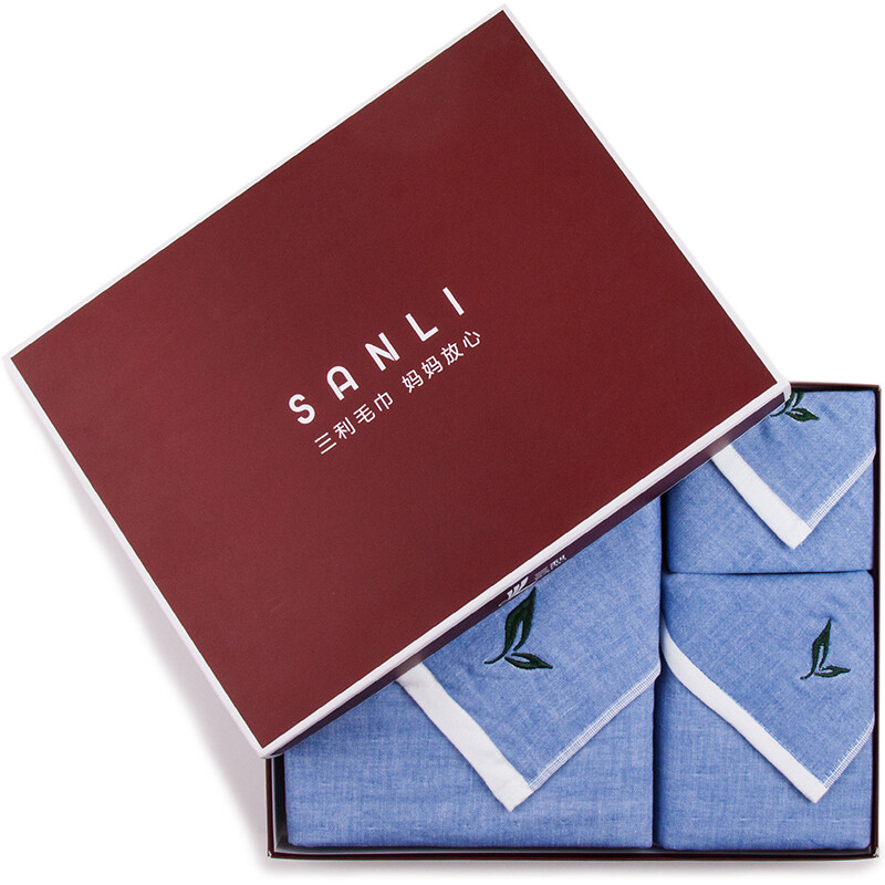 三利毛巾家纺 纯棉AB版纱布系列 方巾毛巾浴巾组合三件套礼盒装 植物香味茶香-杜若色