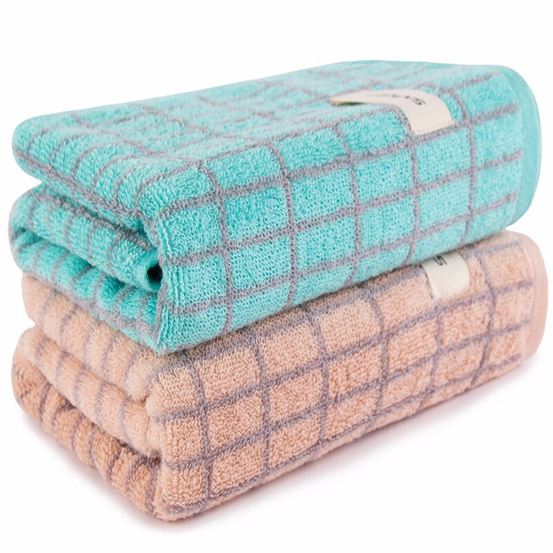 三利 毛巾家纺 纯棉经典格纹大面巾2条装 柔软吸水洗脸巾 成人洁面巾 组合