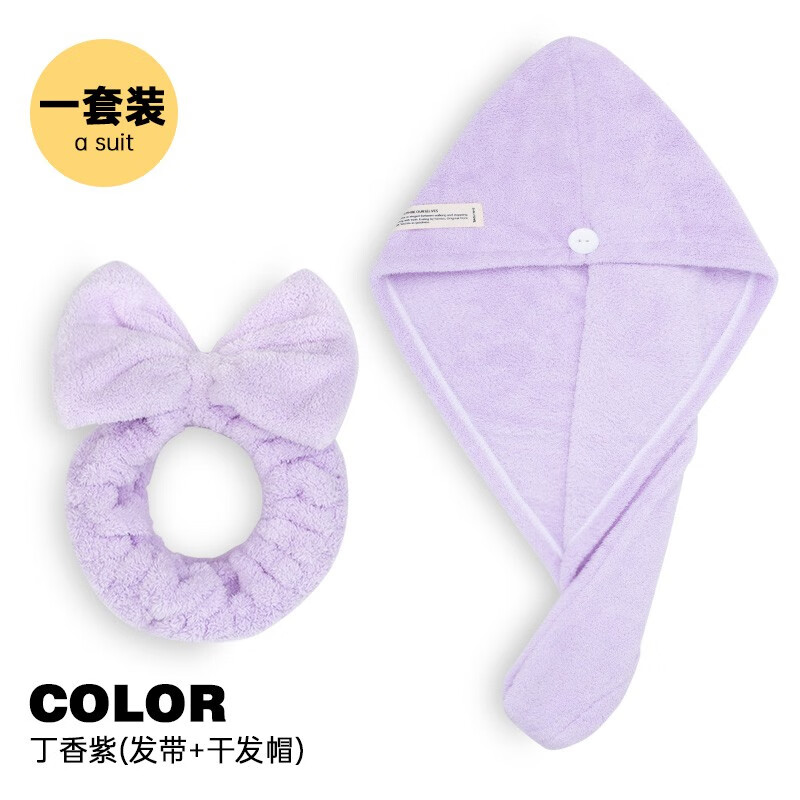 三利干发帽 柔软强吸水可爱擦头发浴帽包头速干毛巾 干发帽+发带-丁香紫