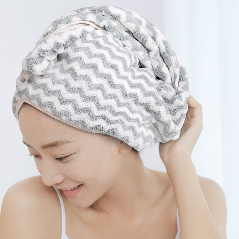 三利干发帽女吸水速干擦头发毛巾包头巾浴帽可爱长发速干毛巾 1条-太空灰 25*65