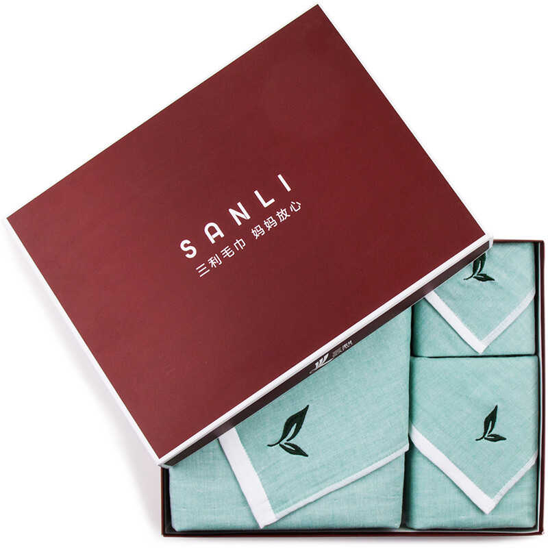 三利毛巾家纺 纯棉AB版纱布系列 方巾毛巾浴巾组合三件套礼盒装 植物香味茶香-若竹色