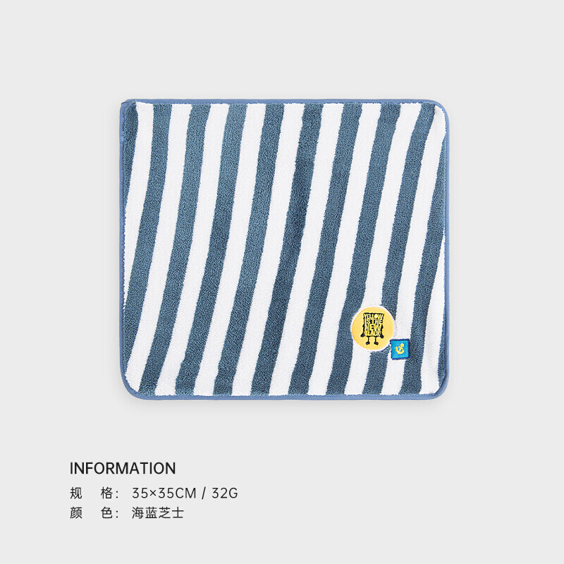 三利海绵宝宝擦手巾挂式儿童毛巾家用女洗脸搽手布可爱柔软小方巾手帕 海蓝芝士