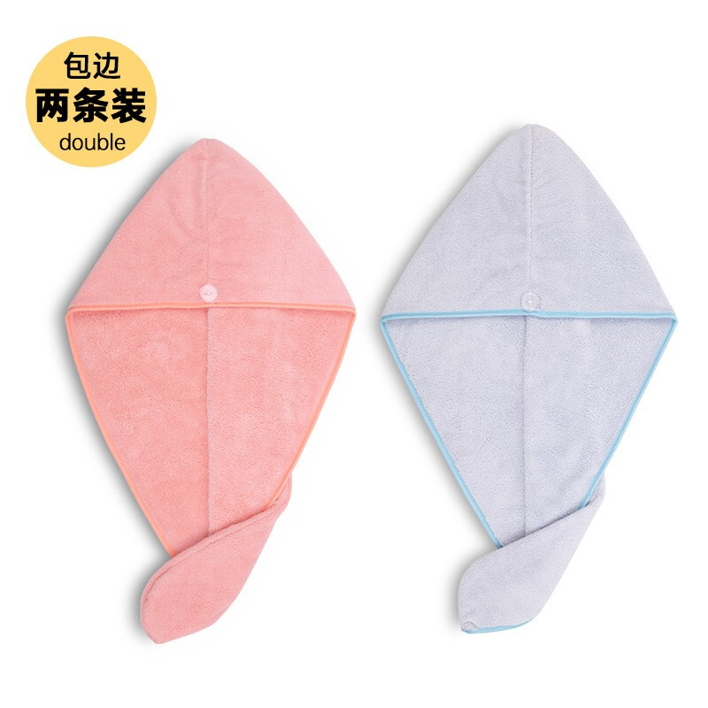 三利干发帽 吸水速干擦头发毛巾包头巾浴帽可爱女长发干发神器 包边款2条(蓝+粉)
