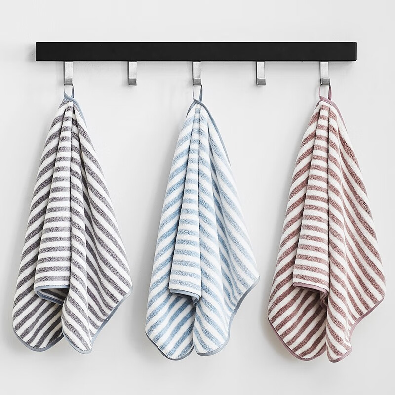 三利速干毛巾3条装 带挂绳洗脸面巾柔软吸水不易掉毛干发巾 35*70cm 蓝*1 咖*1 灰*1