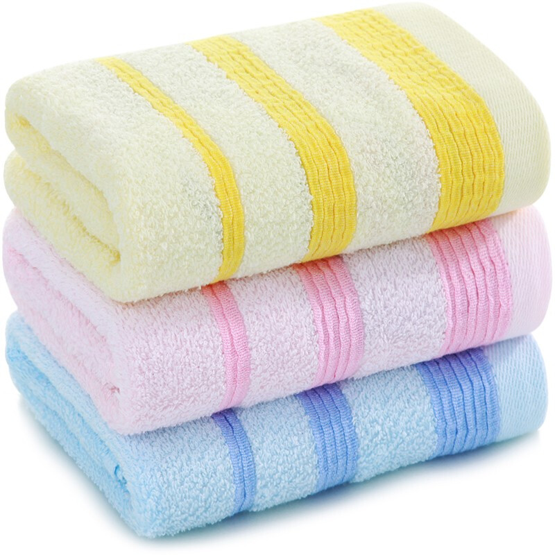 三利 毛巾家纺 纯棉柔软亲肤吸水毛巾3条装 蓝缎1条+粉缎1条+黄缎1条 32x70cm