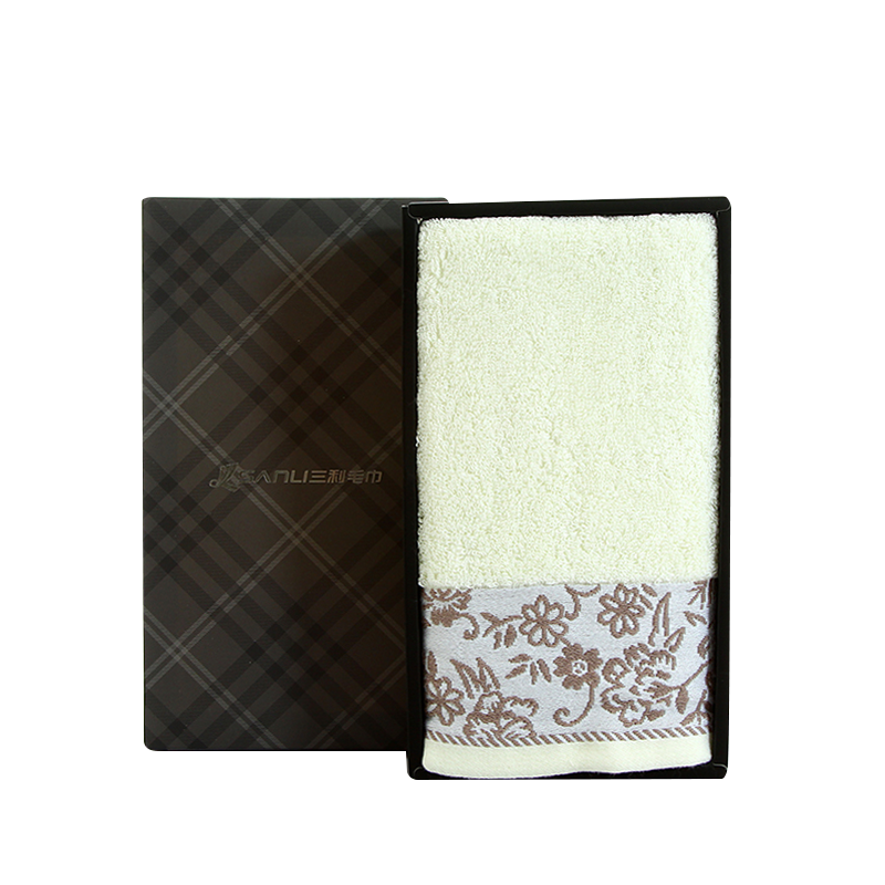 三利 毛巾礼盒1条 纯棉亲肤洗脸巾 蓝山全棉洁面巾 34*75cm 米色
