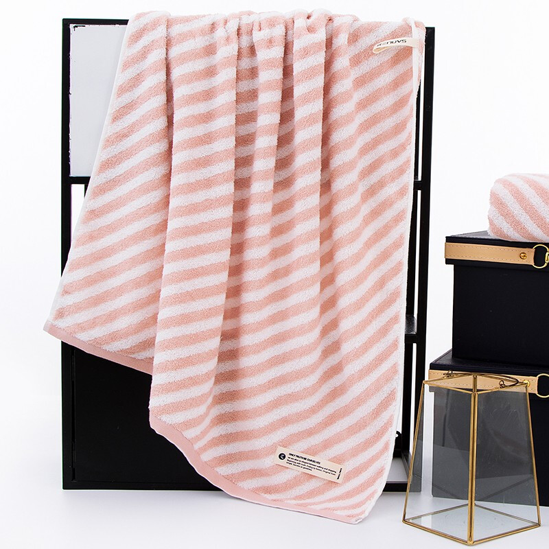 三利浴巾 纯棉A类色织大浴巾 新疆棉花全棉柔软吸水男女情侣加厚带挂绳裹身巾 73*142cm 粉色