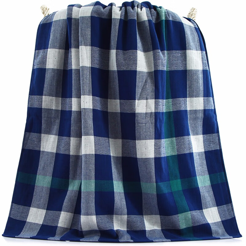 三利纯棉毛巾浴巾 新疆棉A类色织洗脸大毛巾全棉柔软吸水男女情侣加厚带挂绳洗澡大浴巾裹身巾 浴巾1条-蓝色