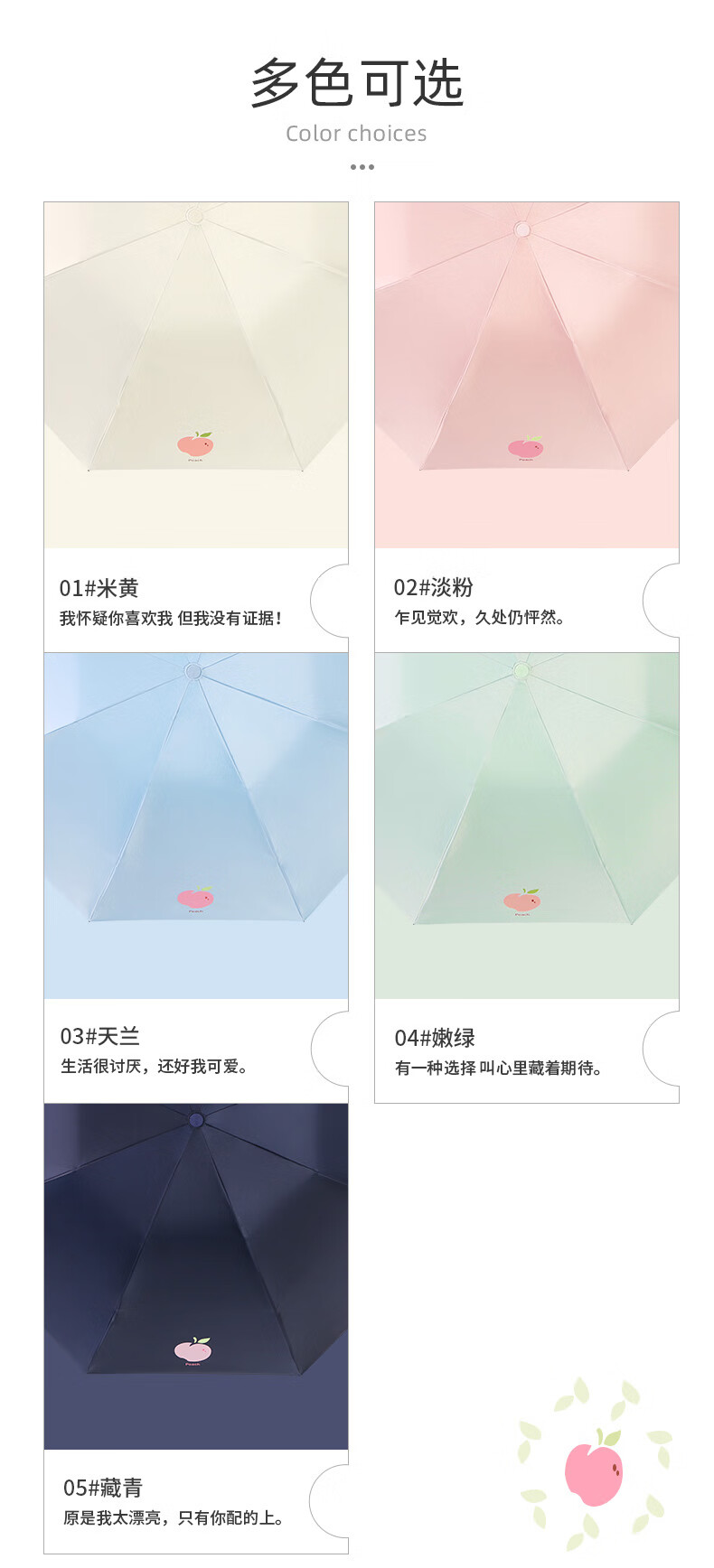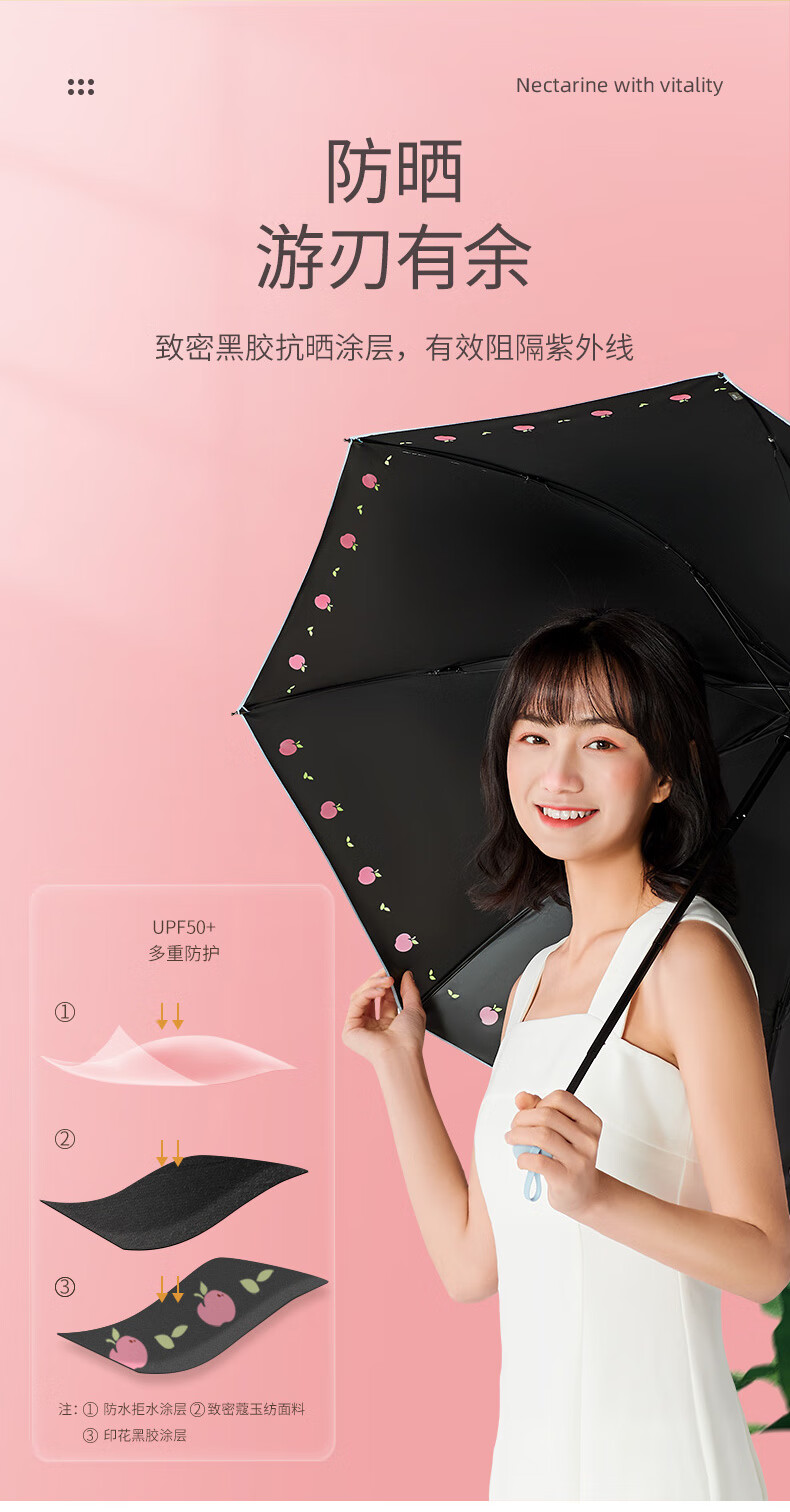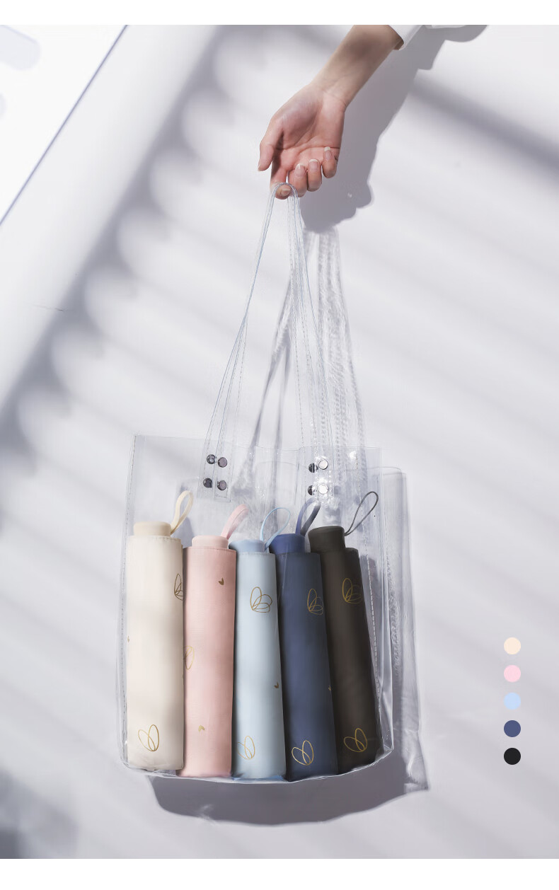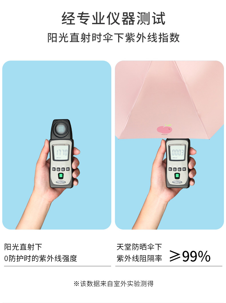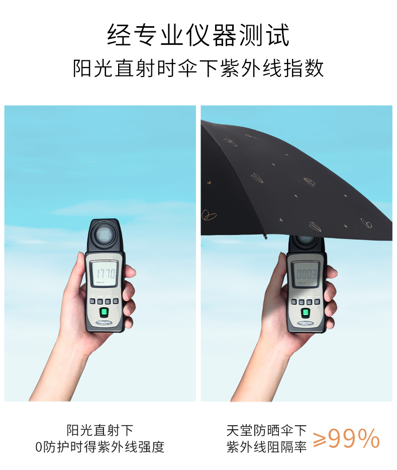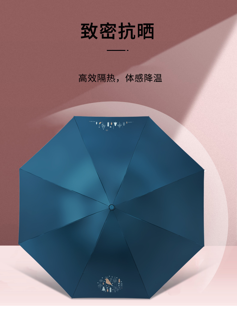 天堂伞旗舰 黑胶防晒防紫外线五折口袋胶囊伞小巧轻便晴雨两用太阳伞女 花兔烂漫蓝色