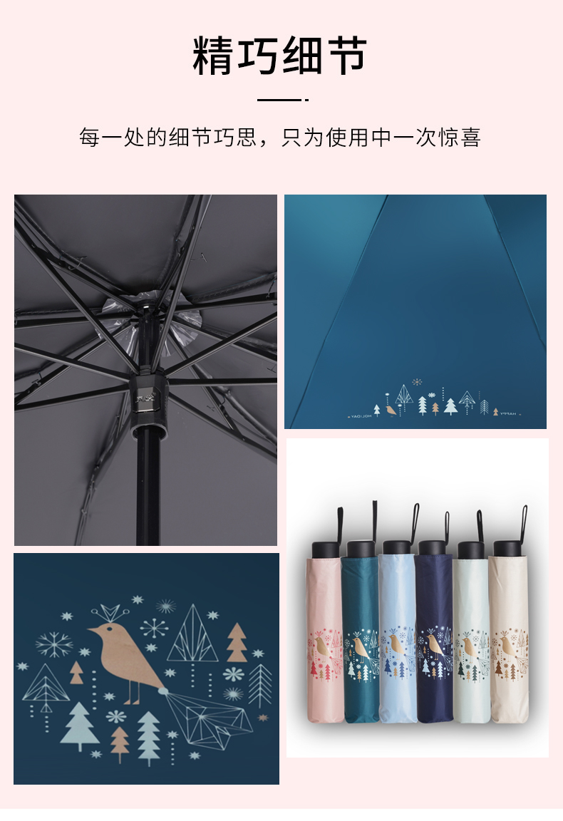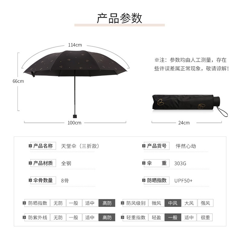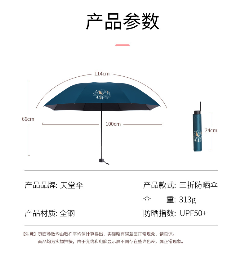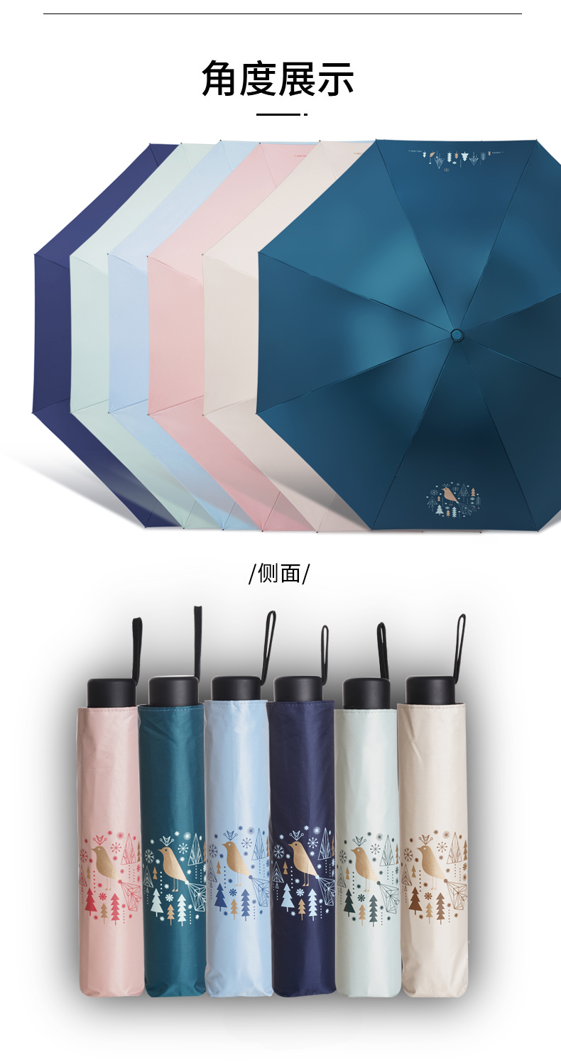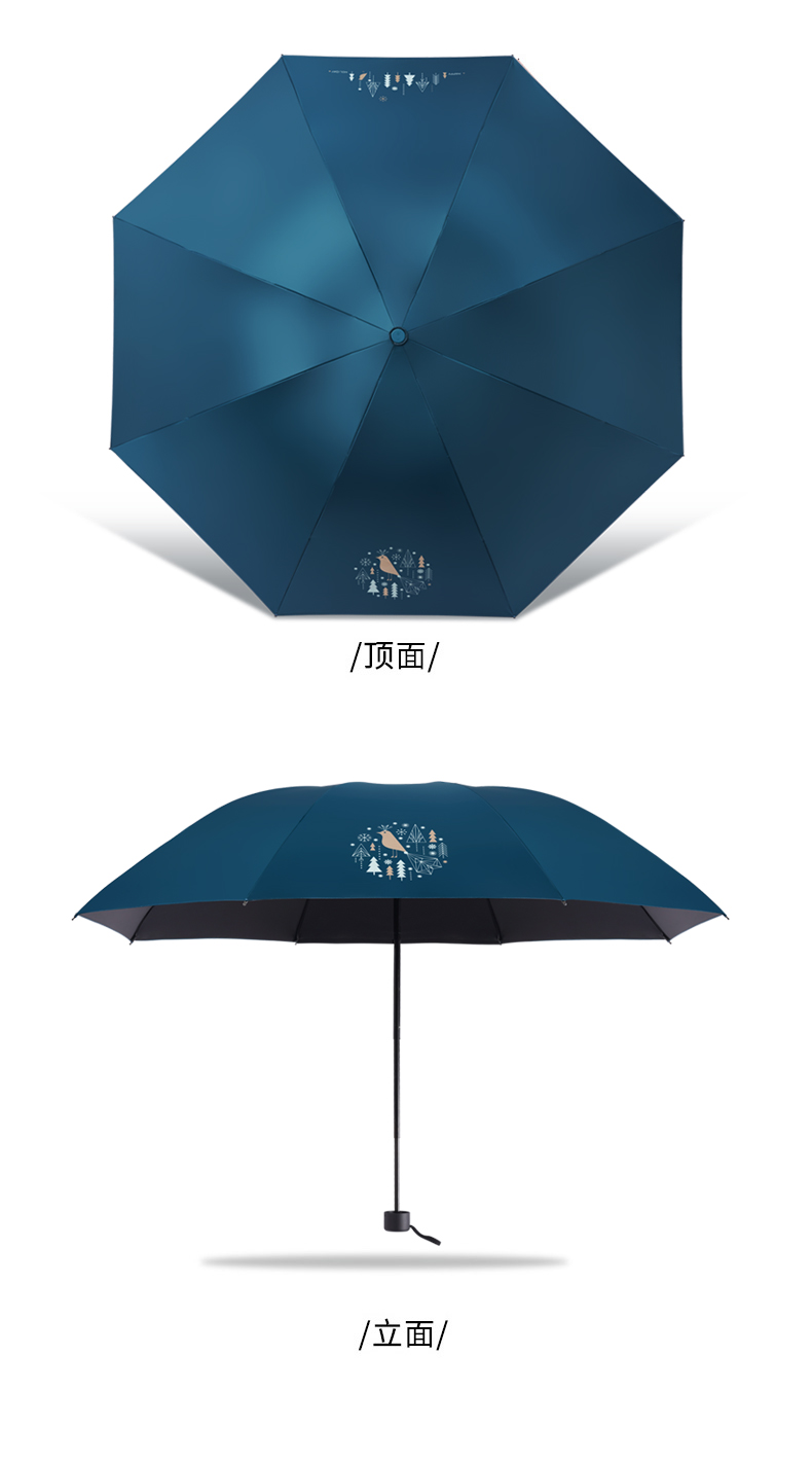 天堂伞 黑胶数码转印55cm*8骨三折晴雨伞银装素裹31842E花内