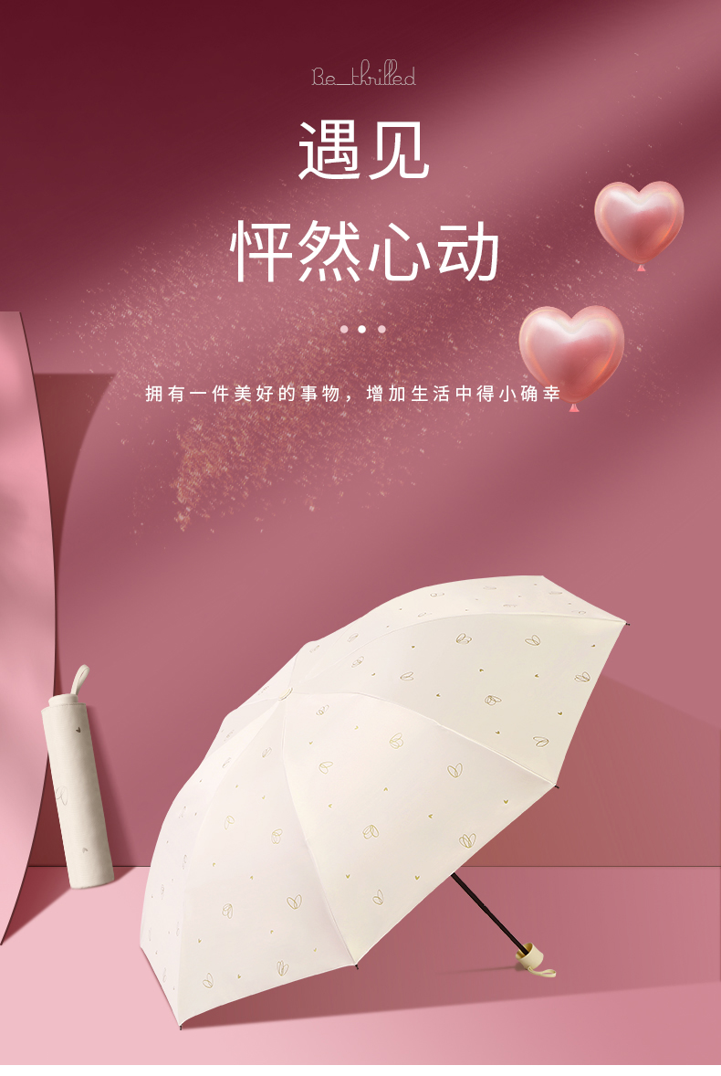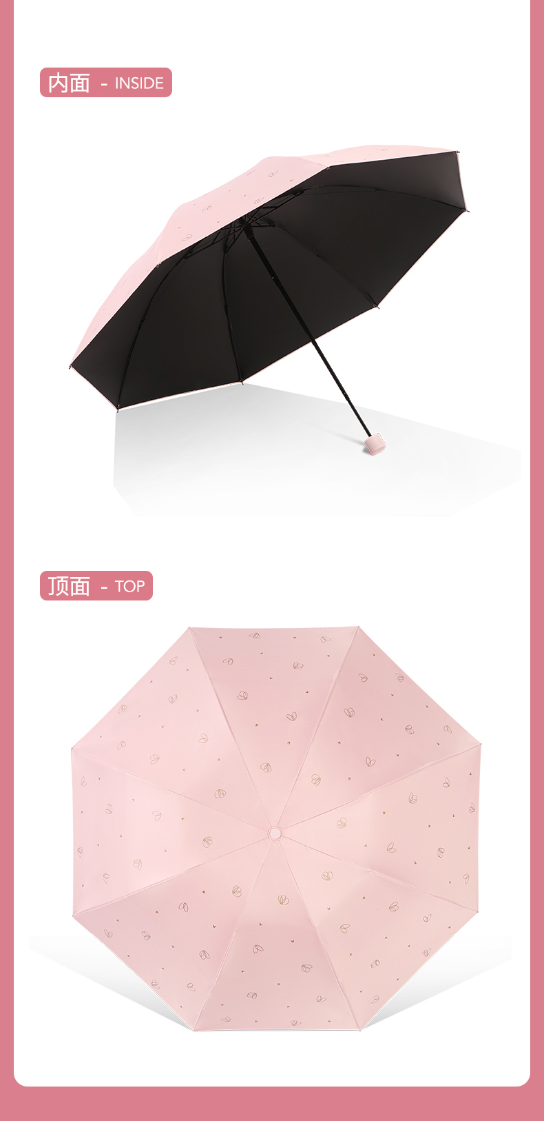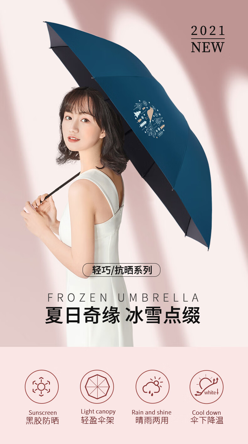 天堂伞 黑胶数码转印55cm*8骨三折晴雨伞银装素裹31842E花内