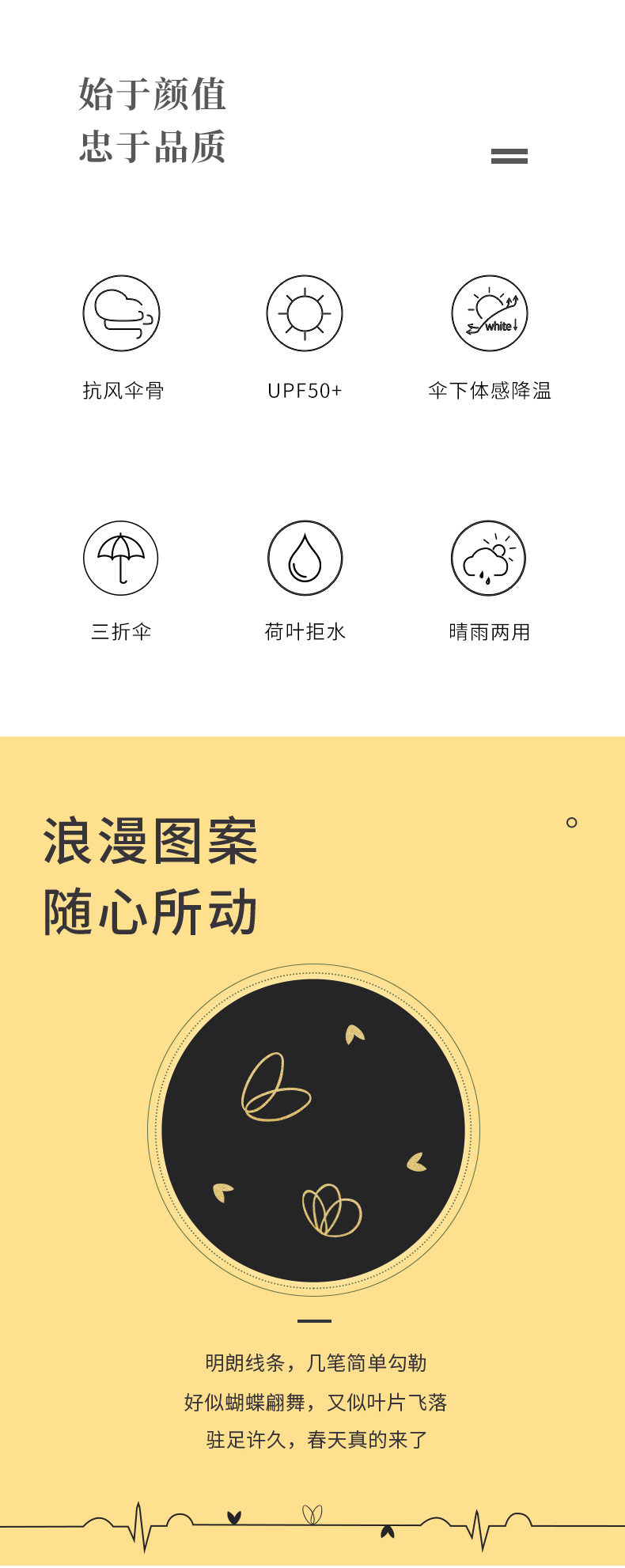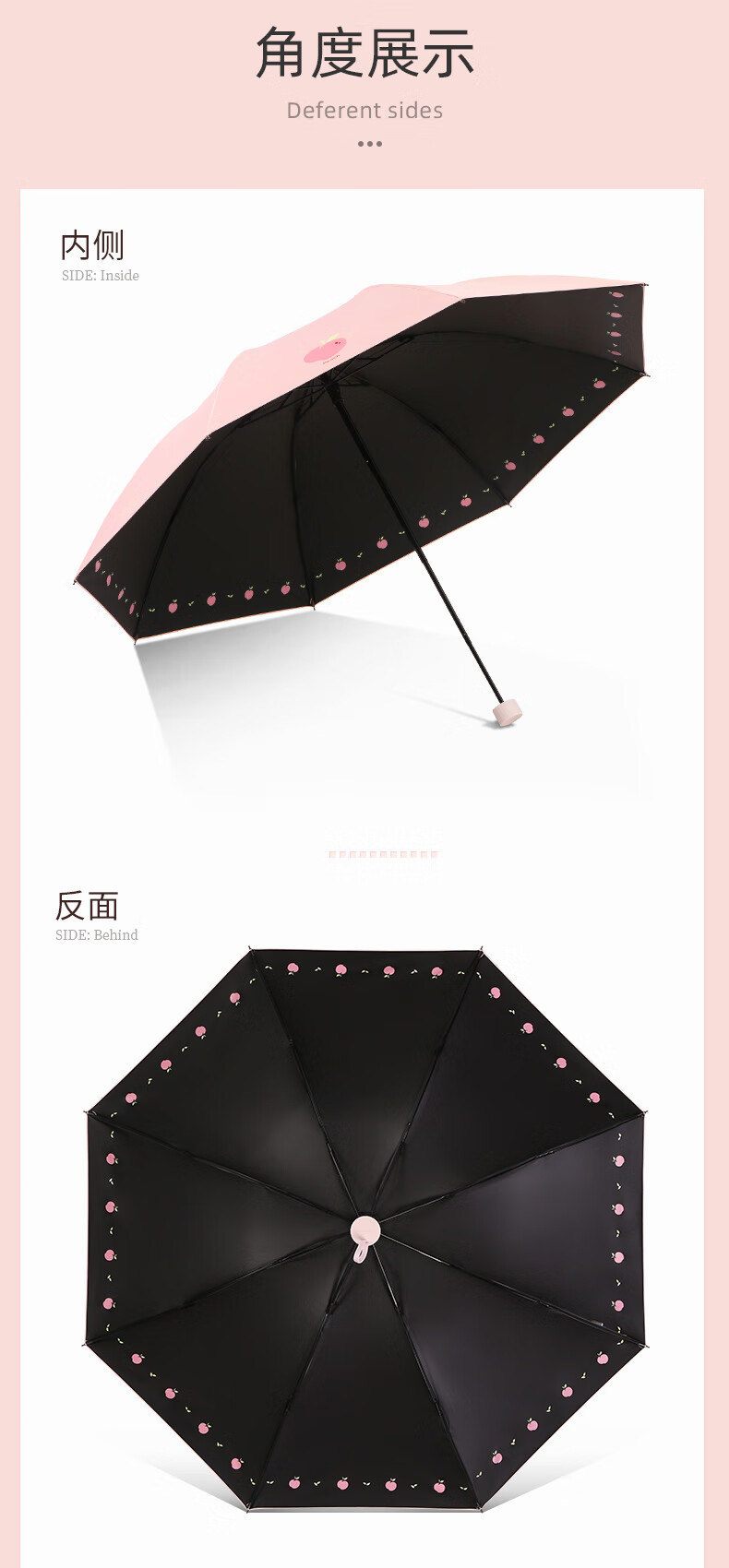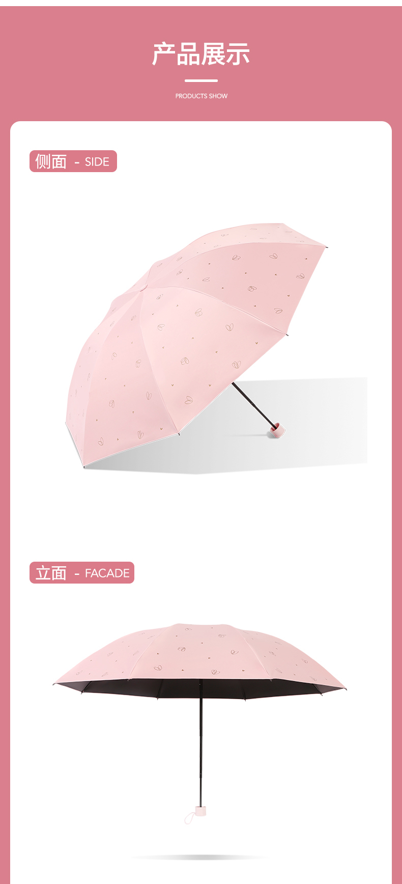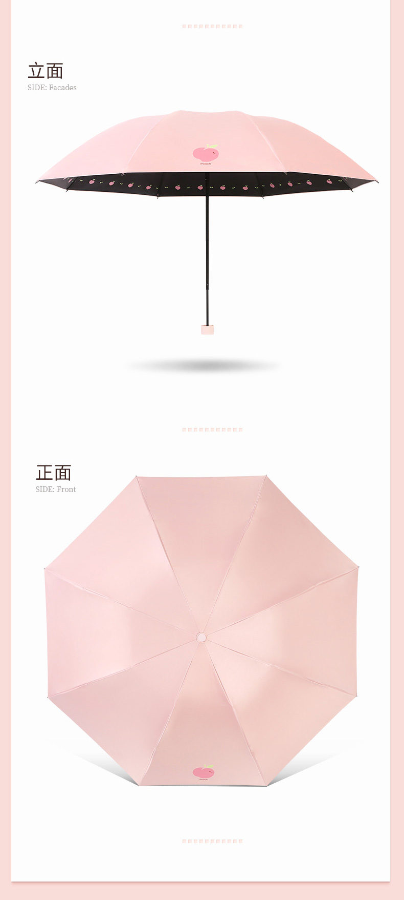 天堂伞 黑胶数码转印55cm*8骨三折晴雨伞银装素裹31842E花内