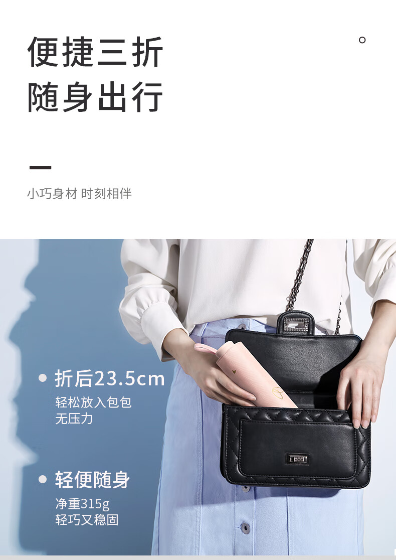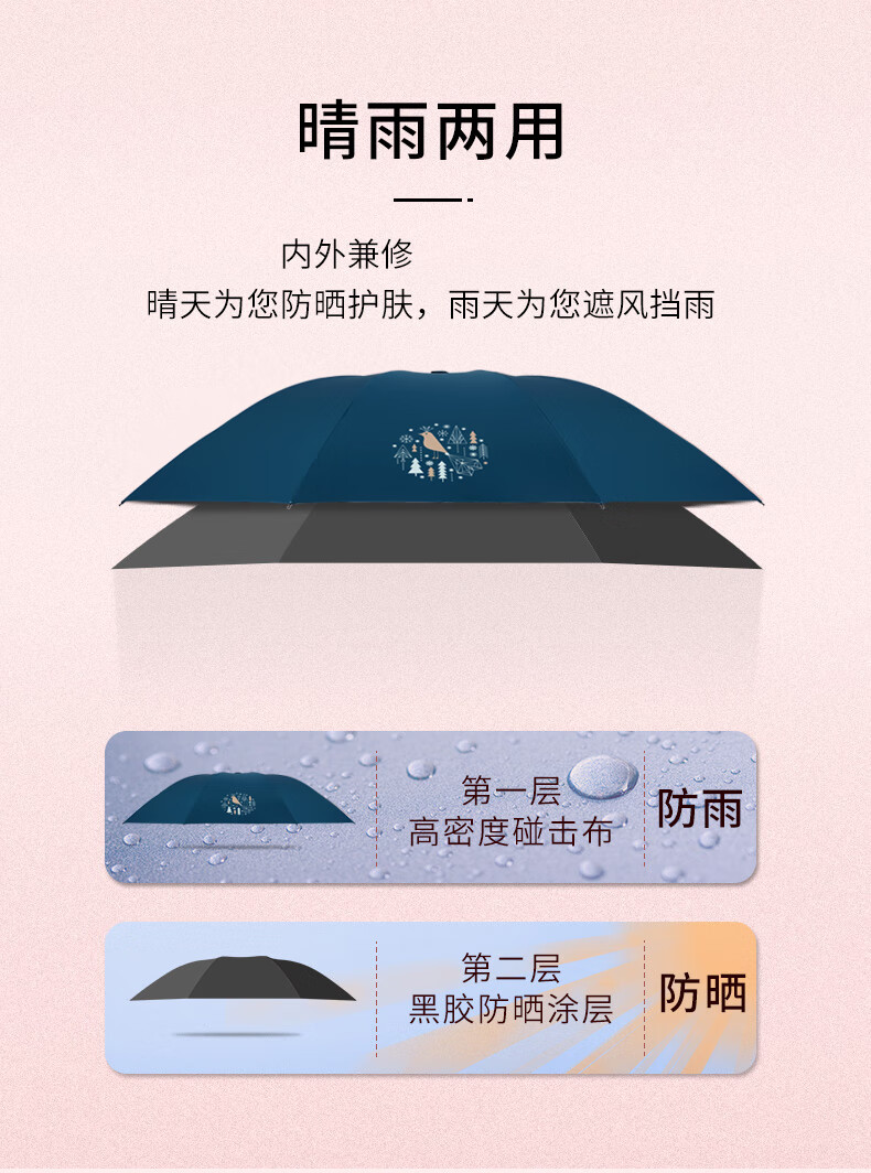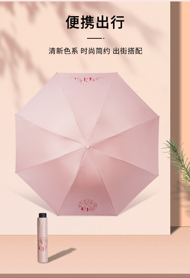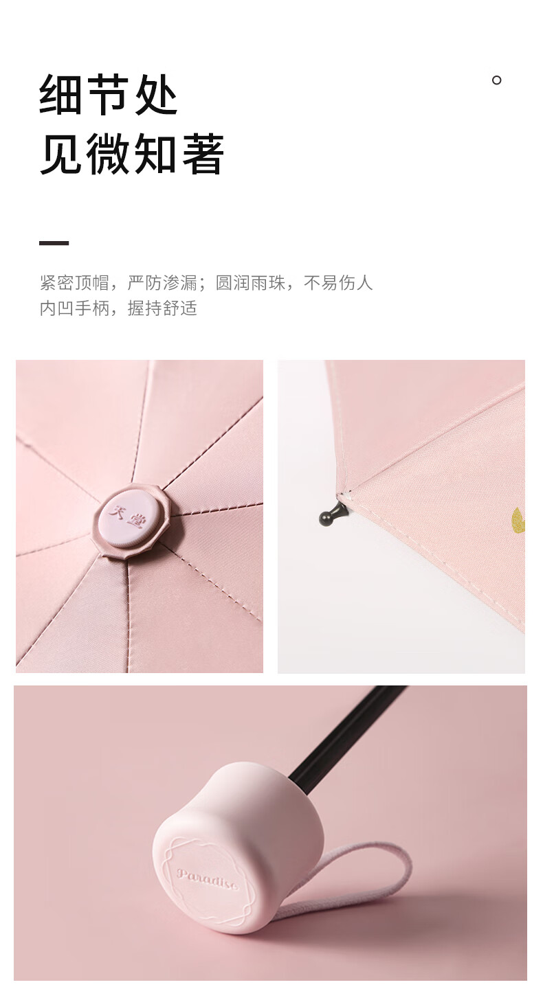 天堂伞女士三折叠晴雨两用伞黑胶防晒防紫外线超轻遮阳伞太阳伞小清新雨伞小巧便携 青鸟【浅绿】